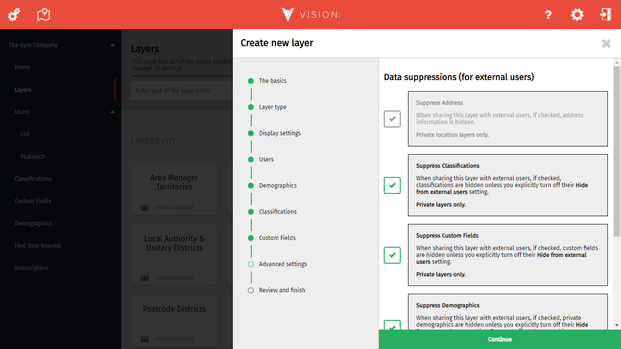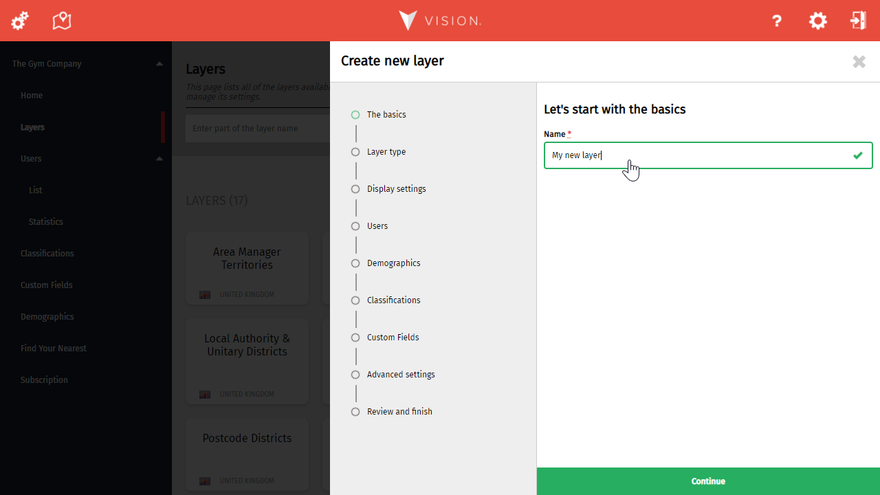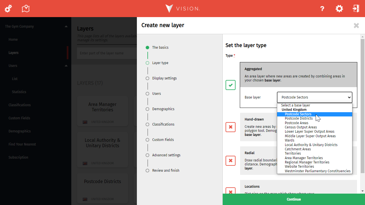 It's now time to specify what you want to use this layer for. Based on your selection, you will then be asked to specify a country or a base layer. Just remember, you can't change this afterwards.
