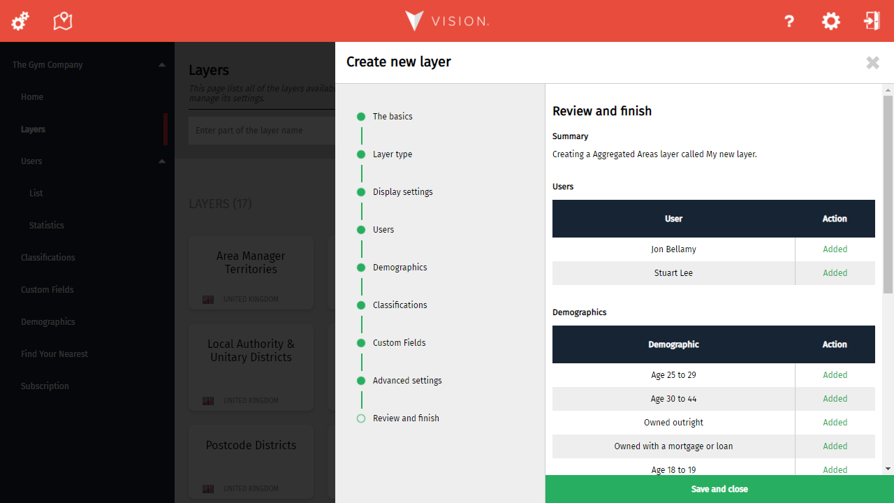Click Save and close to complete the process.