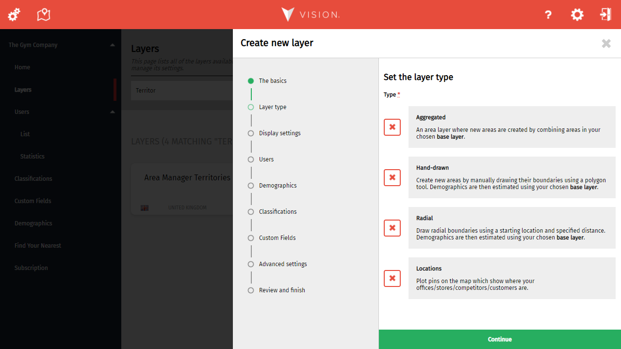 A section is highlighted above. Note how this section has a green 'Create new layer' action button.